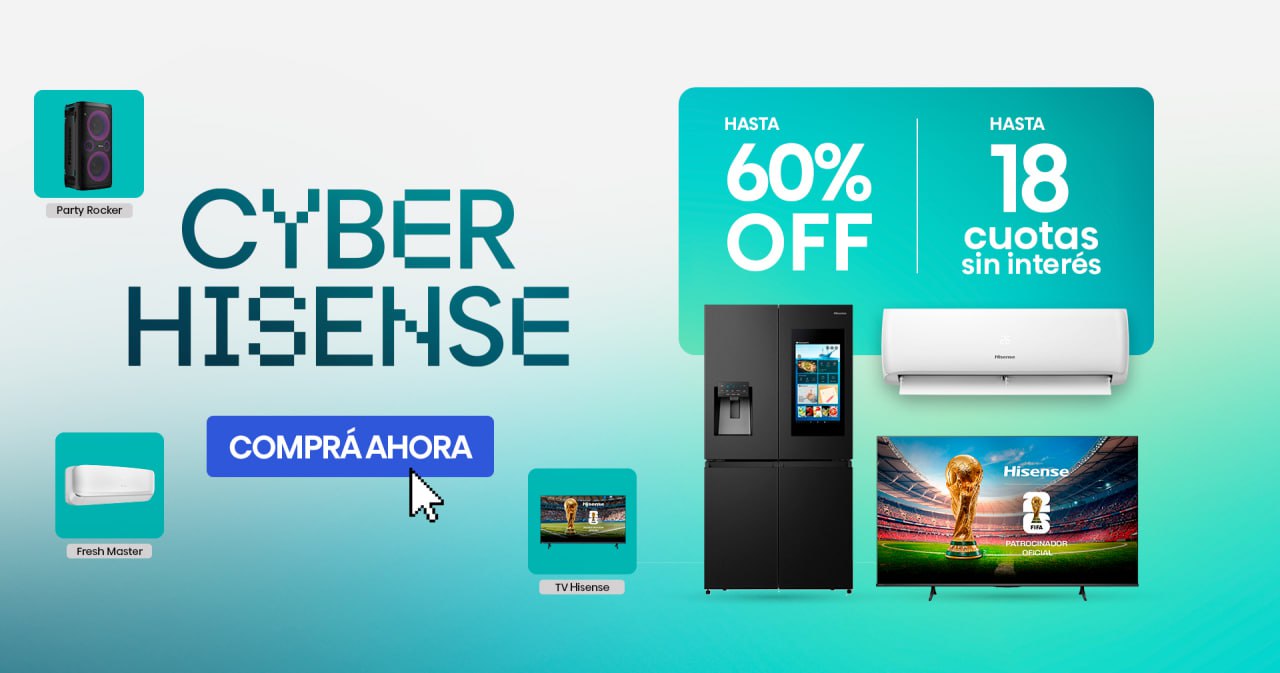 Este año, la CyberWeek se transforma en CyberHisense, una oportunidad única para renovar tu hogar con tecnología de última generación. Encontrá televisores, aires acondicionados y productos de línea blanca con descuentos de hasta el 60 % y la posibilidad de pagar en hasta 18 cuotas sin interés.