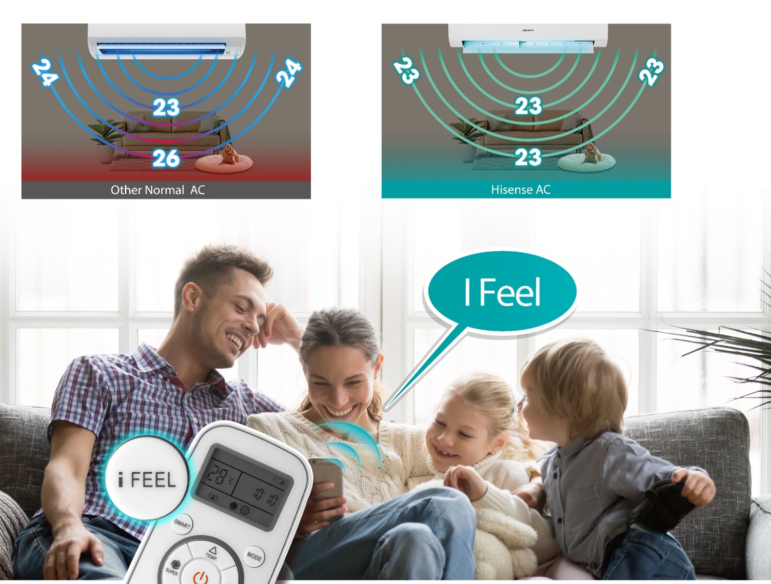 El botón I Feel activa un control inteligente que ajusta la temperatura de manera más precisa y cómoda, según tus necesidades.